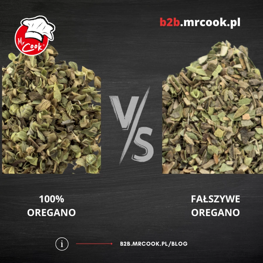 Орегано - найчастіше фальсифікована спеція в Європейському Союзі (джерело: Звіт Європейської комісії про фальсифікацію на ринку спецій і трав за 2021 рік). Згідно з цим джерелом, до 48% зразків орегано, вилучених з ринку, були фальсифіковані. Оптові продавці спецій пропонують орегано під назвою Oregano MIX. Під цим безневинним терміном ховаються суміші, в яких орегано становить лише 15-30%, а решта - дешеві оливкові та миртові листя. Нечесні продавці або використовують такі назви, як "орегано MIX" чи "орегано Blend", або, в крайньому випадку, маркують продукт з лишайника як орегано. Ці продукти можуть виглядати привабливо через нижчу ціну, але, уважно прочитавши опис або специфікацію, ми можемо виявити, що крім материнки вони містять листя оливи та мирта. Однак шахраї не завжди вказують це на етикетці.