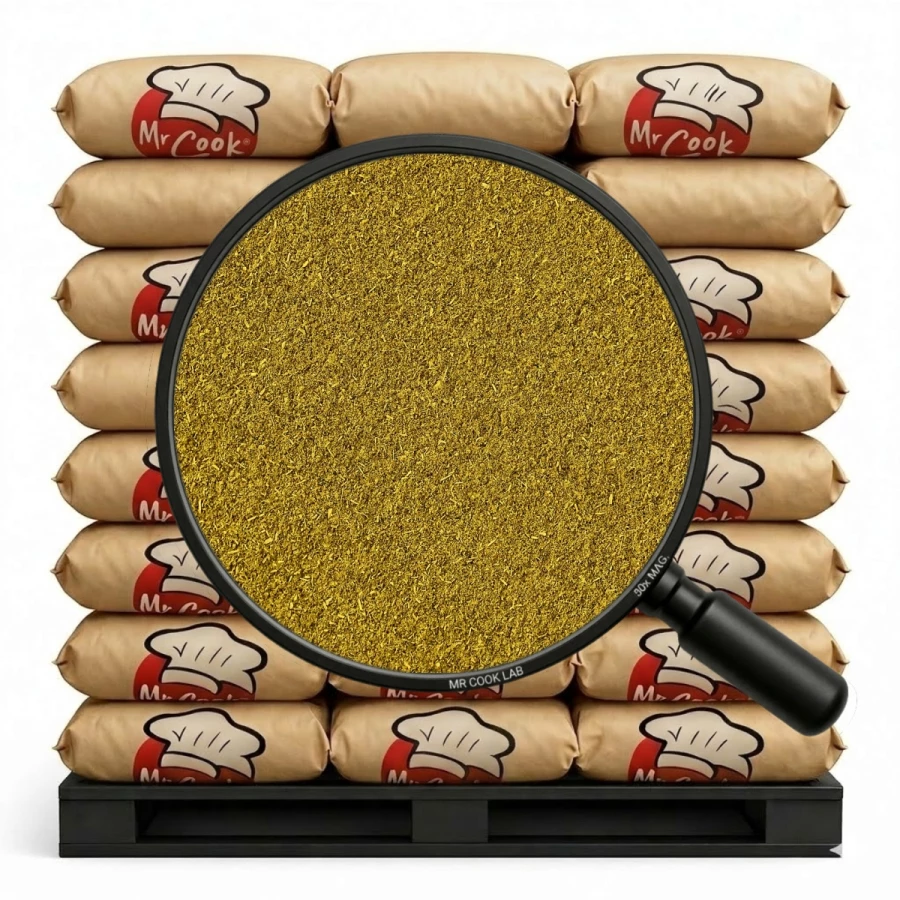 kolendra, kurkuma, kozieradka, gorczyca, goździk, koper włoski, imbir, czosnek, cynamon, pieprz czarny, suche mango, kukurydza.