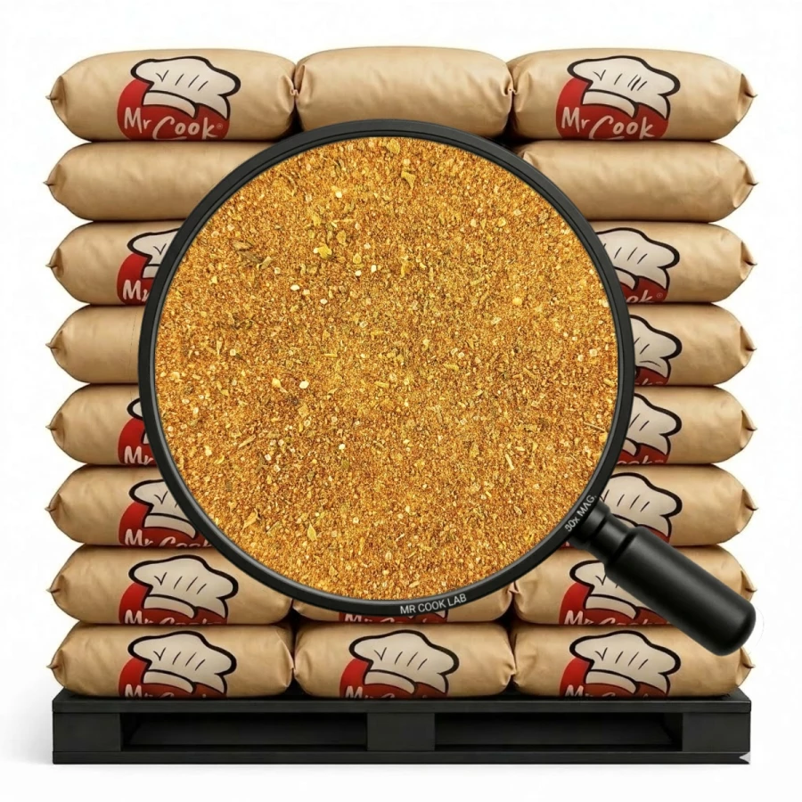 mąka pszenna, sól, skrobia pszenna, cukier, papryka słodka (2,00%), kurkuma, skoncentrowany sok z buraka (60% maltodekstryna, 40% skoncentrowany sok z buraka); suszone pomidory (1,00%), czosnek (1,00%), cebula (1,00%), regulator kwasowości: kwas cytrynowy; bazylia (0,30%), pieprz czarny.