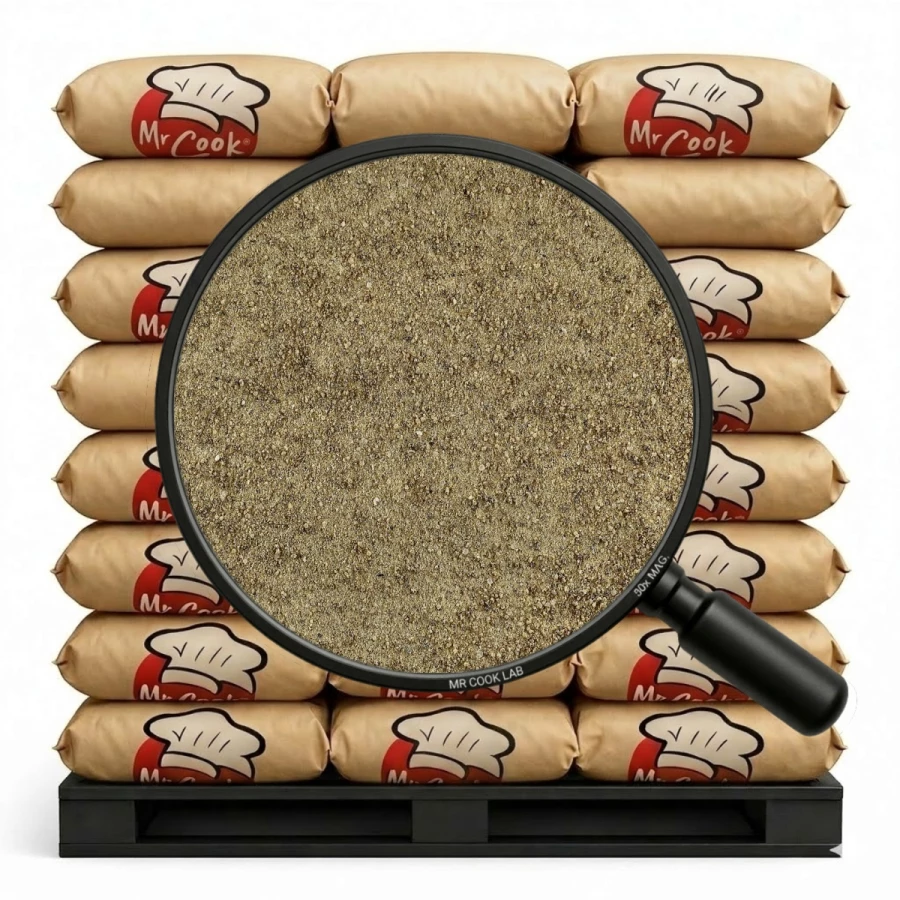 cebula (40%), skrobia pszenna, maltodekstryna, sól, cukier, hydrolizat białka roślinnego (sojowego), tłuszcz palmowy, substancja zagęszczająca: guma guar, kurkuma, pietruszka, pieprz czarny, regulator kwasowości: kwas cytrynowy.