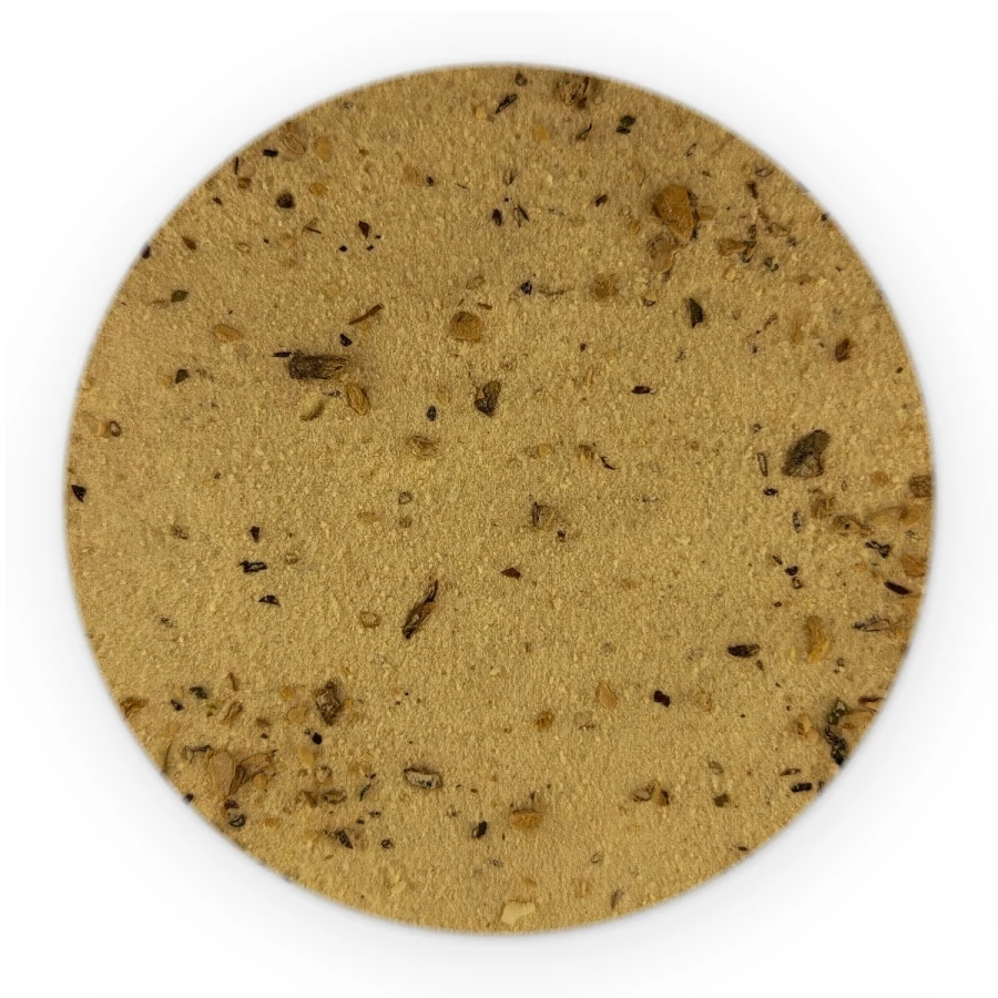 mąka pszenna, skrobia pszenna, sól, cukier, barwnik: karmel E150c; nać pietruszki, aromat, regulator kwasowości: kwas cytrynowy, suszona pieczarka (0,01%).